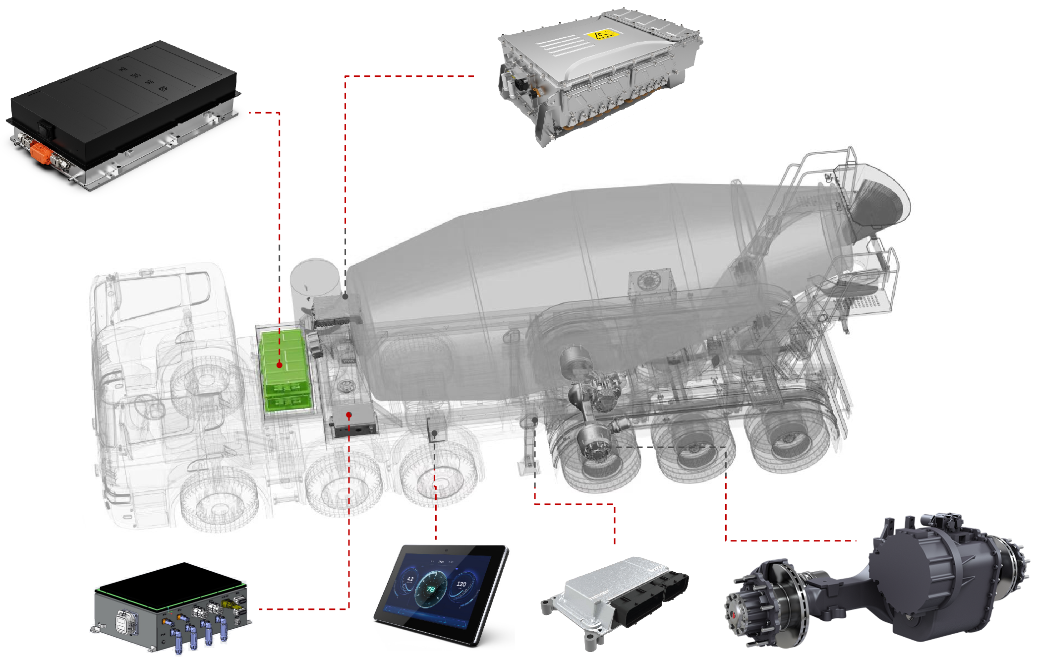 展会上,多宝电竞|Home智能的智电一体化解决方案引起了广泛关注。工程师团队在现场为参展观众详细介绍了混合动力牵引搅拌半挂车的系统方案。该方案基于多宝电竞|Home智能历经多年开发的eMagi智电平台,针对牵引搅拌半挂车进行了定向开发,涵盖以下几个方面: